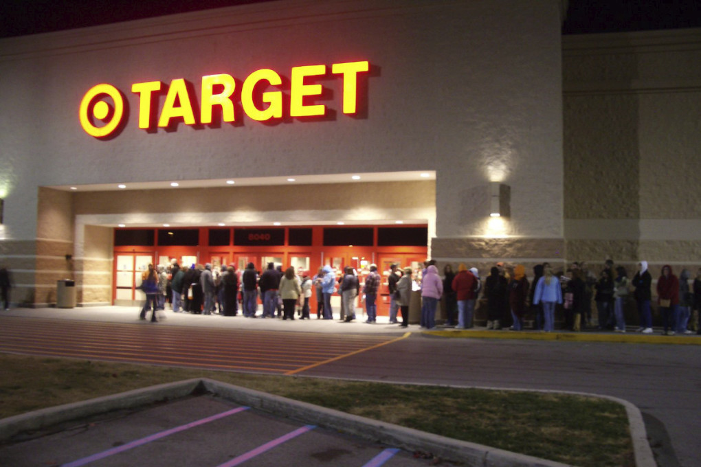Before dawn on Black Friday, a crowd stretches all the way across the front of this Target store.
